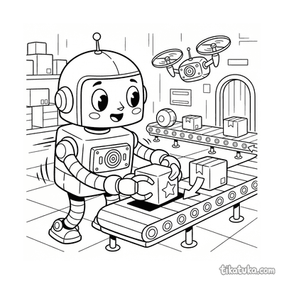 Robot Retro Clasificando Paquetes