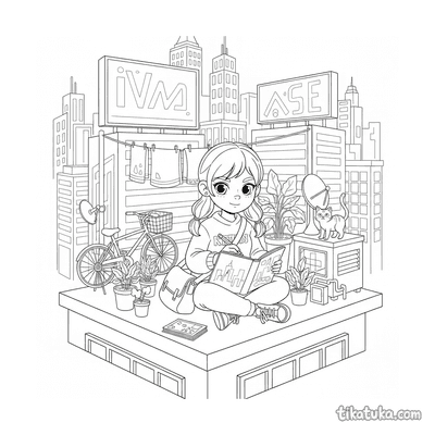Esta colección de dibujos para colorear presenta escenas que transcurren en una azotea. Las ilustraciones capturan momentos de exploración, fantasía y vida cotidiana en este espacio elevado.