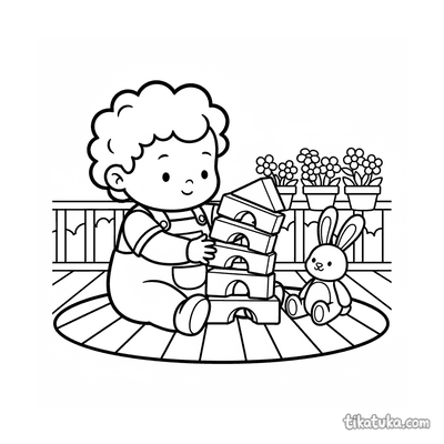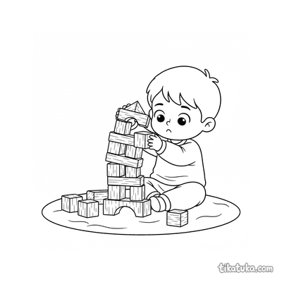 Niño Construyendo una Torre Alta con Bloques