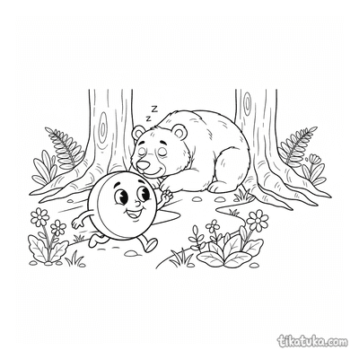 Kolobok pasando junto a un oso dormido