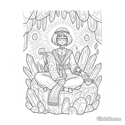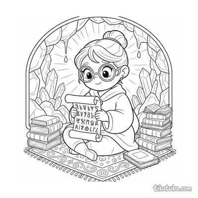 Las escenas incluyen a una princesa erudita leyendo en una biblioteca de cristal, un joven dragón escriba trazando piedras rúnicas y un científico microbio trabajando en su laboratorio. También hay unicornios estudiando glifos y aventureros recolectando polvo estelar, todos capturados en el momento de aprender. Puedes descargar gratis estos 21 dibujos en blanco y negro, perfectos para imprimir en casa. Las líneas claras y los detalles de cada escena hacen que colorear a estos sabios personajes sea una actividad entretenida y educativa.