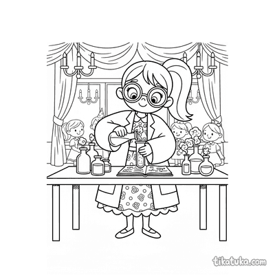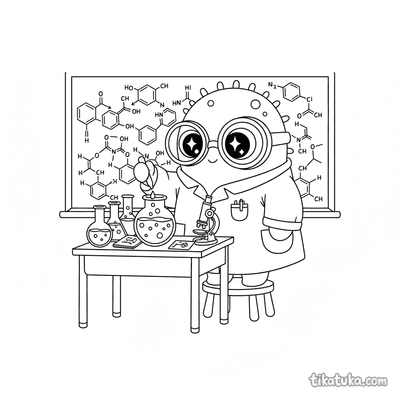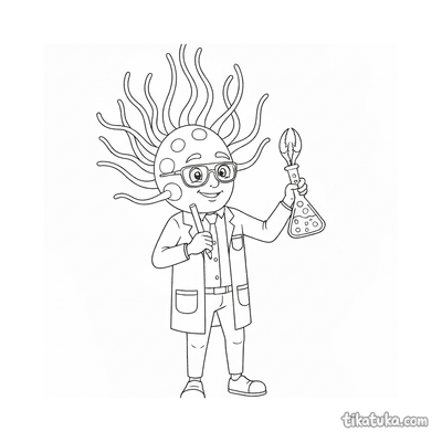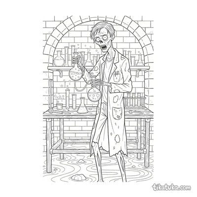 También hay científicos jóvenes, microbiólogos e incluso zombis químicos, cada uno inmerso en su propio descubrimiento. Puedes descargar todas las ilustraciones de una vez para imprimir en casa o en la escuela. Los contornos en blanco y negro están pensados para que los niños puedan colorear con facilidad, ya sea con lápices o directamente en la pantalla.