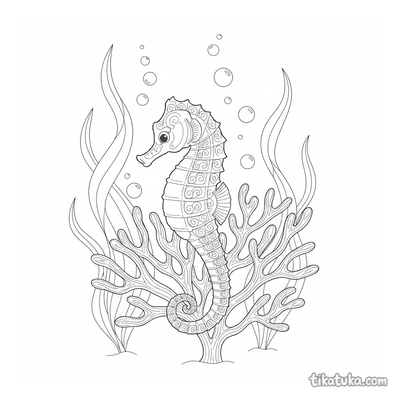 Los caballitos de mar son criaturas fascinantes del mundo marino. Esta colección reúne ilustraciones en blanco y negro de estos animales en su hábitat natural. Las páginas capturan su forma característica y los detalles de su entorno.