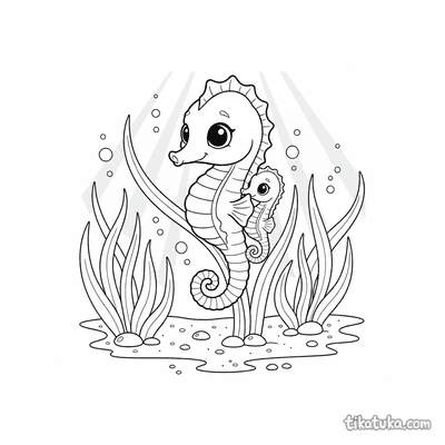 En estas páginas, el caballito de mar aparece enroscado en ramas de coral, nadando entre bosques de algas o interactuando con otros habitantes del arrecife. Algunas ilustraciones presentan escenas imaginativas, como un caballito de mar dirigiendo una orquesta submarina o acompañando a una princesa sirena en su cueva. Todas las imágenes tienen contornos claros y están listas para ser personalizadas con color. Puedes descargar e imprimir cualquiera de los dibujos de forma gratuita para una sesión de coloreado en casa. También es posible colorear online directamente, ideal para probar combinaciones antes de imprimir. Los trazos están diseñados para que los niños puedan pintar con facilidad dentro de las líneas.