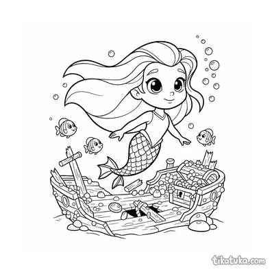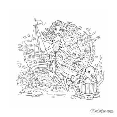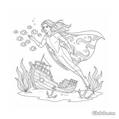 Princesa sirena explorando naufragio