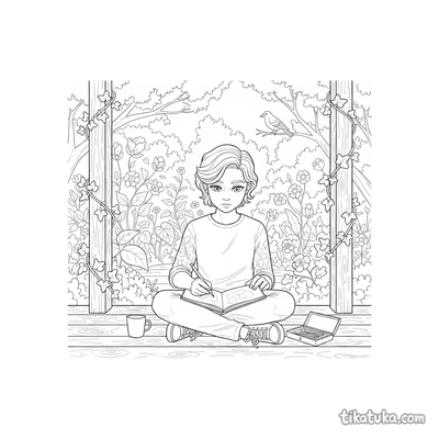 Puedes descargar e imprimir gratis estas 30 páginas con líneas claras en blanco y negro. Son ideales para imprimir en lote y practicar el coloreado de escenas creativas donde el cuaderno de dibujo es el protagonista.
