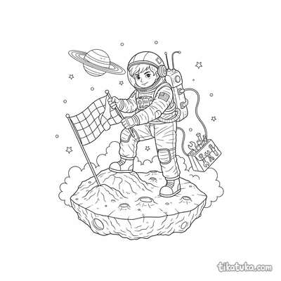 En estas páginas, los niños encontrarán astronautas plantando banderas en la luna, examinando rocas como astrogeólogos o dando paseos espaciales. También hay trajes espaciales en personajes como Buhíto Oof, el pingüino Marcel o un dinosauro explorador, cada uno en su propia misión interplanetaria. Todas las ilustraciones tienen líneas claras y están listas para imprimirse de una vez o página a página. Son perfectas para colorear con lápices o rotuladores, ya sea en papel después de descargarlas o directamente en la pantalla.