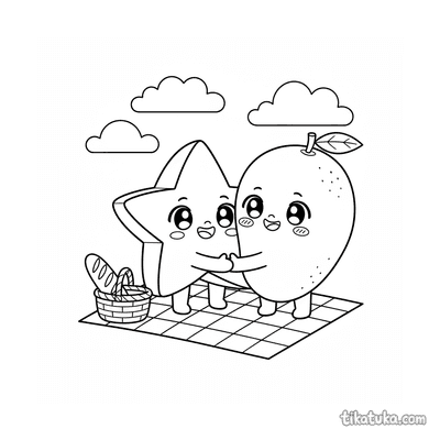 Fruta Estrella y Mango Chibi Amigos Abrazándose