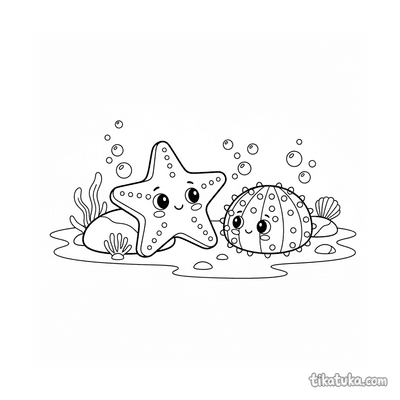En estas páginas, las estrellas de mar descansan sobre rocas cálidas, trepan por ellas o conversan con otros habitantes del mar como erizos y cangrejos. También hay escenas más imaginativas, como un ajolote jugando con ellas o asomándose desde una cueva submarina. Todas las ilustraciones están en blanco y negro, con líneas claras perfectas para que los niños coloreen. Puedes descargar cada dibujo por separado o imprimir varios a la vez para tener horas de diversión creativa.