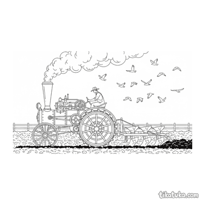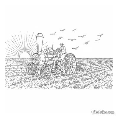 En esta sección encontrarás escenas con tractores de vapor vintage arando campos de trigo o calabazas, aplanadoras en calles adoquinadas y submarinos explorando arrecifes de coral. Cada ilustración captura los detalles característicos de estas máquinas, como sus calderas y ruedas de paletas. Puedes descargar e imprimir estos dibujos en blanco y negro para tener una actividad creativa lista en cualquier momento. Los contornos claros de las ilustraciones facilitan que los niños coloreen tanto en digital como en papel, explorando la era del vapor.