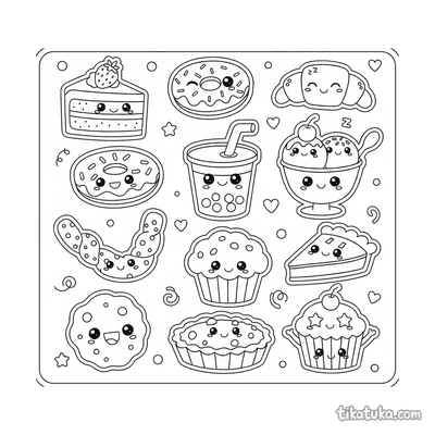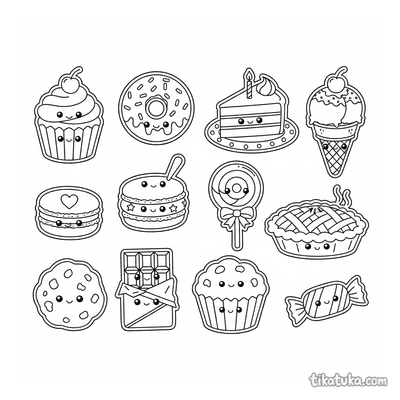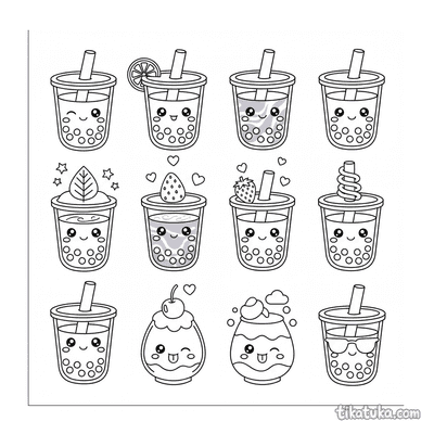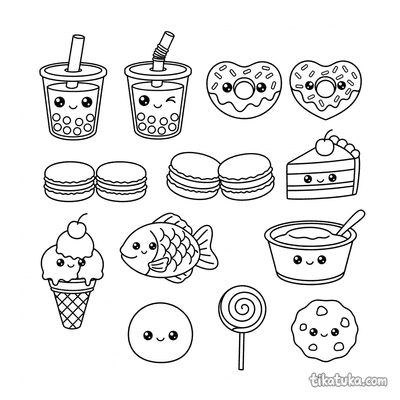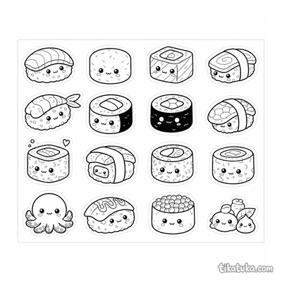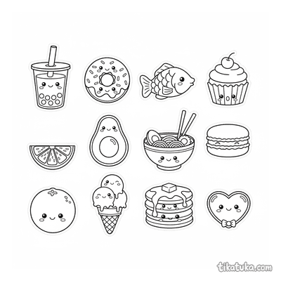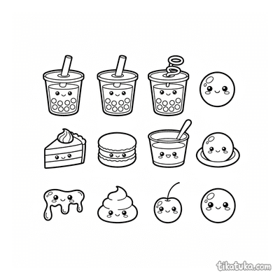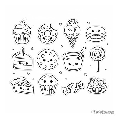 Encontrarás hojas de pegatinas con postres y pasteles kawaii, bebidas boba con toppings, sushi lindo y accesorios para días lluviosos. También hay diseños con símbolos nórdicos y barcos vikingos, ideales para crear sets de calcomanías temáticas. Puedes descargar e imprimir gratis las 18 plantillas de pegatinas para colorear. Los contornos claros y el diseño en blanco y negro facilitan la impresión en bloque y permiten colorear online con precisión, dando vida a cada adorno.