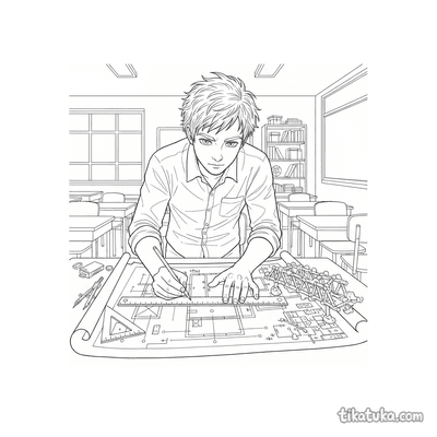 En estas páginas, el estudiante se transforma en aprendiz de hechicería practicando levitación, en arquitecto dibujando planos o en ninja entrenando su equilibrio. También hay escenas de alquimia con calderos burbujeantes, lecciones de piano y jóvenes inventores con sus diseños. Todas las ilustraciones están en blanco y negro con líneas claras, listas para imprimir en casa o en la escuela. Puedes descargar las imágenes de forma gratuita para colorearlas con lápices o pinturas, o usar la herramienta online directamente desde la pantalla.