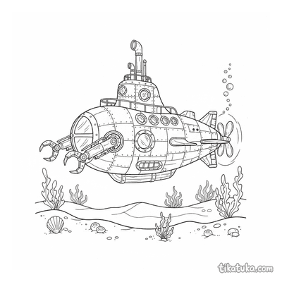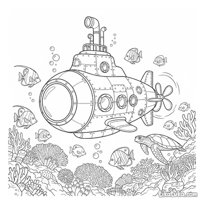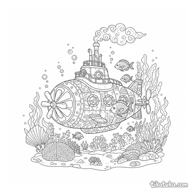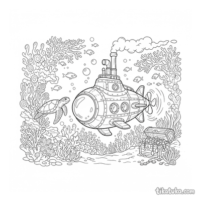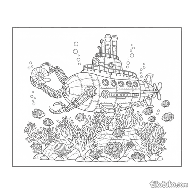 Esta colección reúne dibujos para colorear de submarinos y otras criaturas del fondo marino. Los diseños presentan escenas detalladas de exploración submarina y vida acuática.