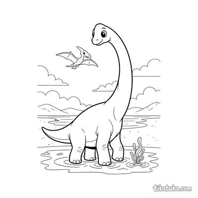 Brachiosaurus chapoteando en el borde del agua