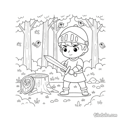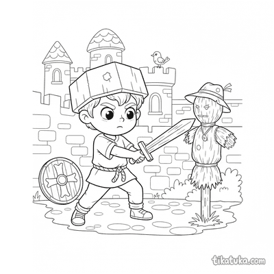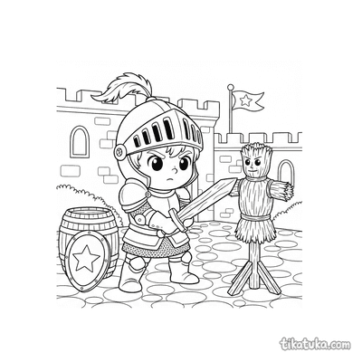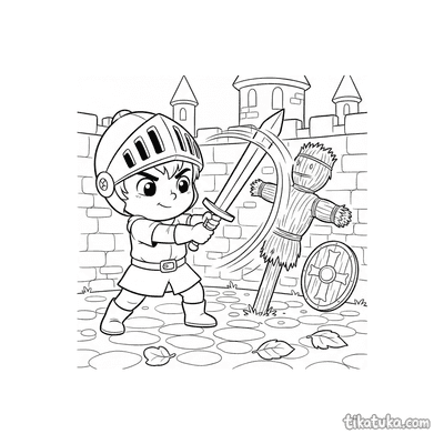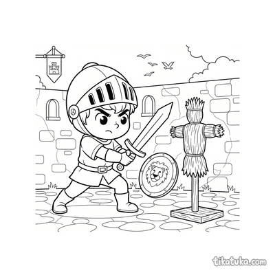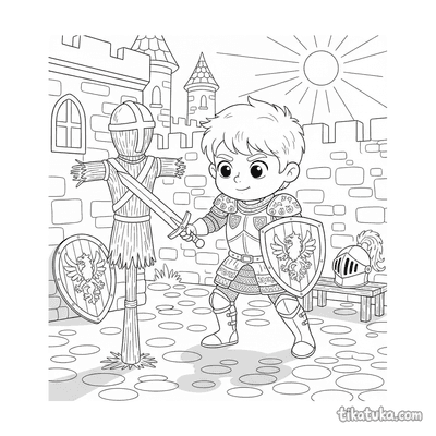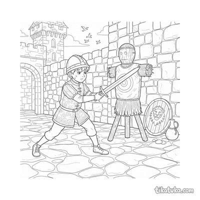 Esta colección de dibujos para colorear presenta escenas con espadas de diferentes estilos y contextos. Las páginas muestran espadas en manos de caballeros y en situaciones de entrenamiento o aventura.