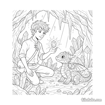 Joven Domador de Dragones Alimentando a una Cría de Dragón de Roca