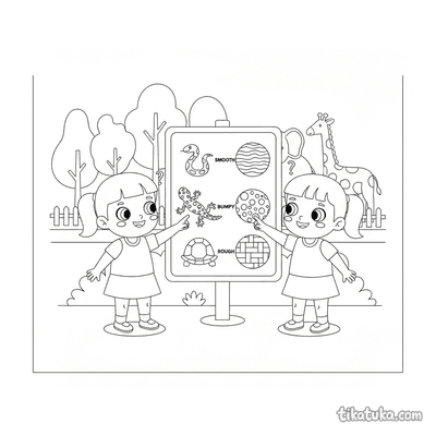 Niños comparando texturas de escamas de reptiles en cartel táctil