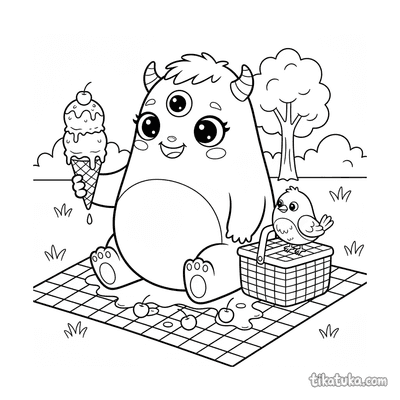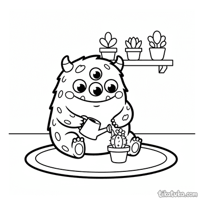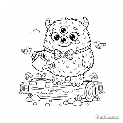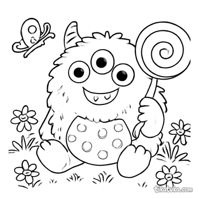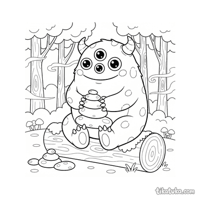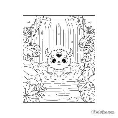 También hay escenas con monstruos tras una cascada, junto a un hongo gigante o convertidos en una burbuja, siempre con sus característicos tres ojos. Puedes descargar todos los dibujos en blanco y negro con un solo clic para imprimirlos juntos. Los trazos claros y los fondos simples hacen que colorear a estas criaturas sea fácil y divertido, ya sea en la pantalla o en papel.
