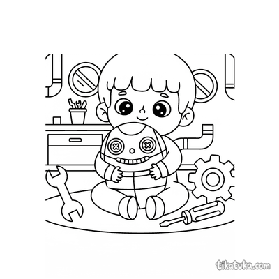 Entre las páginas para colorear de juguetes hay peluches como un loro o un búho en la naturaleza, juguetes mecánicos como un dragón de cuerda y creaciones inventivas como un walkie-talkie de lata. También hay escenas de construcción con puentes y casas junto al agua, junto a monstruos de juguete leyendo o durmiendo. Todas las ilustraciones tienen contornos nítidos en blanco y negro, ideales para imprimir en casa o en la escuela. Puedes descargar las páginas de juguetes de una en una o usar la función de impresión múltiple para crear tu propio libro de actividades.