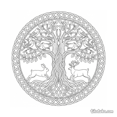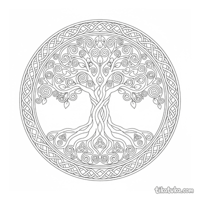 Mandala Intrincada del Árbol de la Vida con Nudos Celtas