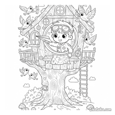 Esta colección reúne dibujos para colorear de una casa del árbol, ese refugio mágico construido entre las ramas. Las páginas capturan la esencia de este lugar especial, lleno de imaginación y aventuras. Cada ilustración en blanco y negro invita a los niños a explorar este rincón único.