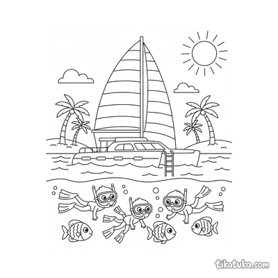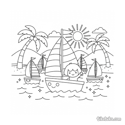 Las escenas también incluyen actividades de aventura, como carreras de catamarán en bahías, veleros navegando y biplanos sobrevolando islas paradisíacas, junto a detalles como el tradicional bote tailandés de cola larga y anillos de piña a la parrilla.