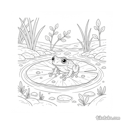 Pequeña rana en una hoja de nenúfar junto al arroyo