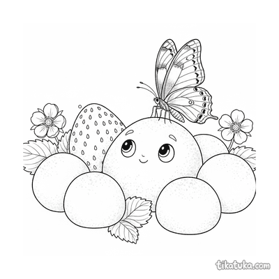 Mochi de fresa observando mariposa