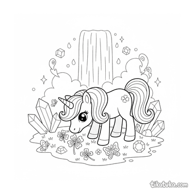 En estas ilustraciones, la cascada es el elemento central de paisajes montañosos y praderas de cristal. Aparece junto a unicornios, ponis mágicos, aprendices de samurái en meditación y monstruos curiosos, creando escenas llenas de fantasía y tranquilidad.