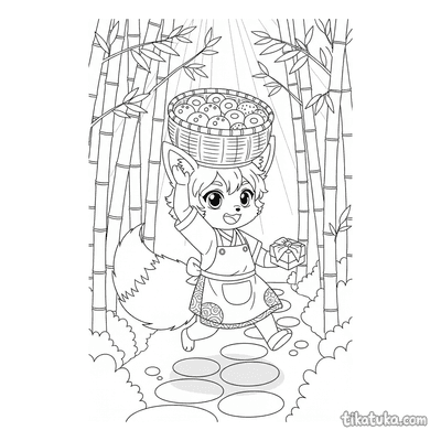 Pastelero Kitsune Llevando Mochi por el Bosque de Bambú