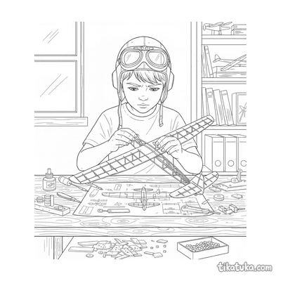 Niño Aviador Construyendo un Planeador de Balsa