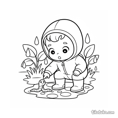 Niño pequeño inspeccionando gusano después de la lluvia